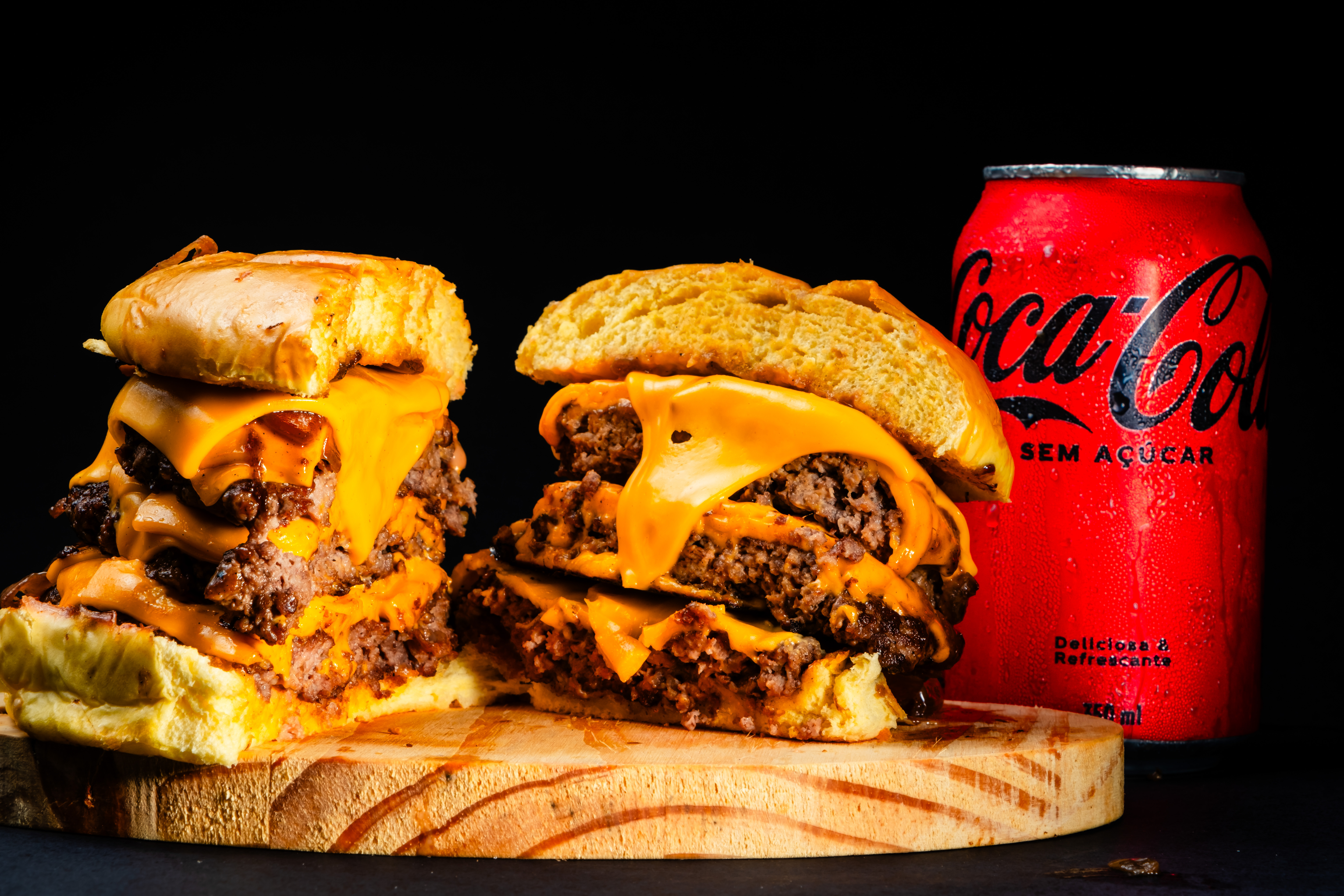 PÃO BRIOCHE, 3 BLEND 120G, MUITO CHEDDAR, CEBOLA CARAMELIZADA, MAIONESE ESPECIAL E ACOMPANHA BATATA